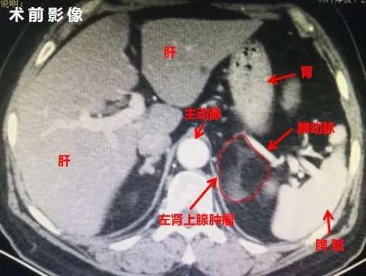 徐志强团队考虑到实施微创手术的难度与风险,在术前反复讨论腹腔镜手术的可行性及具体手术方案,精心为患者制定了手术预案,在与患者及家属进行充分沟通后,决定行经腹腹腔镜左侧肾上腺切除术,通过腹壁小切口对左侧肾上腺这颗大瘤体进行了完整切除。术中徐志强逐一攻克了肿瘤与脾动脉、周围脏器粘连严重等难题,最终患者体内的肿瘤被完整切除。患者术后恢复良好,现已康复出院。
