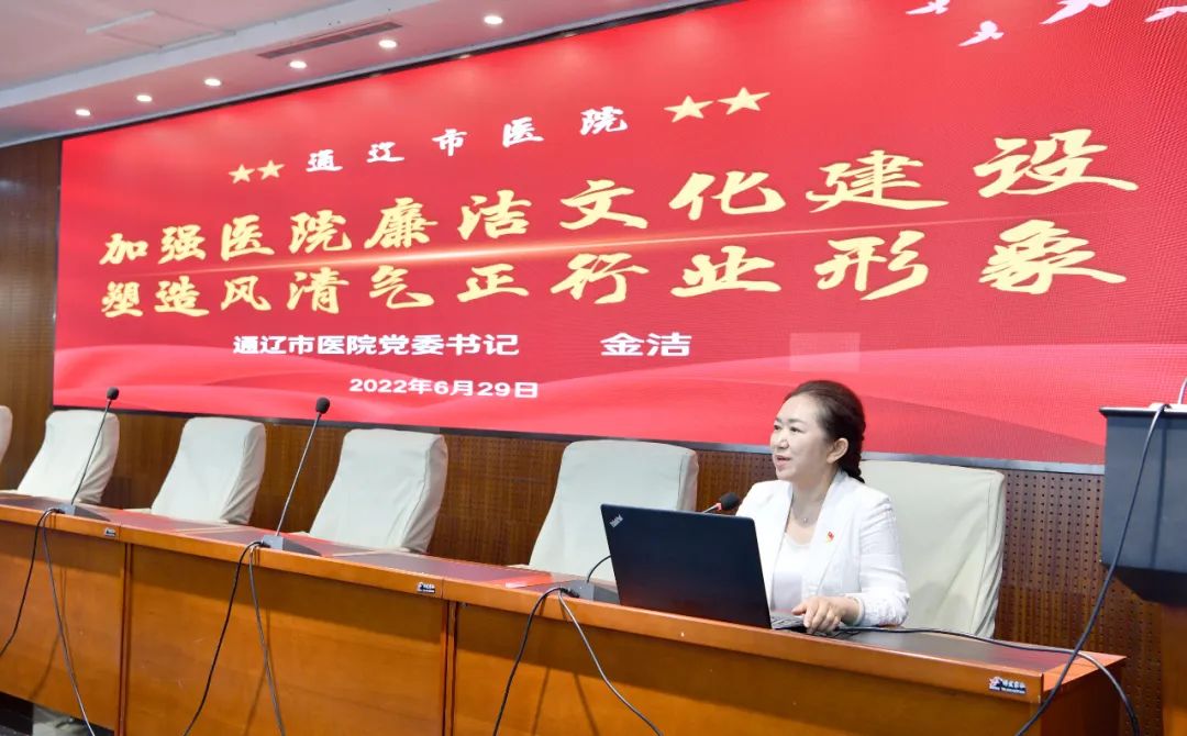 为深入贯彻落实市卫健委关于“崇廉尚洁·我护佑”廉洁文化进医院相关要求,进一步加强医院廉洁文化建设,增强党员干部的廉洁意识,筑牢党员干部拒腐防变的思想防线,6月29日下午,通辽市医院党委书记金洁讲授了一堂题为《加强医院廉洁文化建设 塑造风清气正行业形象》的廉政党课。医院领导班子成员、全院环节干部、各支部委员与会聆听。