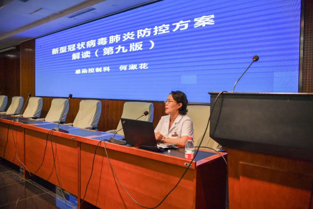 会上,何淑花详细解读了《新型冠状病毒肺炎防控方案(第九版)》知识及更新的核心内容,并对新型冠状病毒的病原学和流行病学、职业特征、信息发布、疫情监测、风险职业人群监测、疫情处置、隔离管理、流调与风险区域划定管控、人员转运、境外输入疫情防控、加强重点环节防控等方面进行了详细讲解,并重点强调全院职工要提高认识,全面贯彻落实疫情防控指示精神,持续筑牢院感防线;要继续加强对预检分诊及发热门诊等重点岗位的管控,巩固我院疫情防控取得的成果。