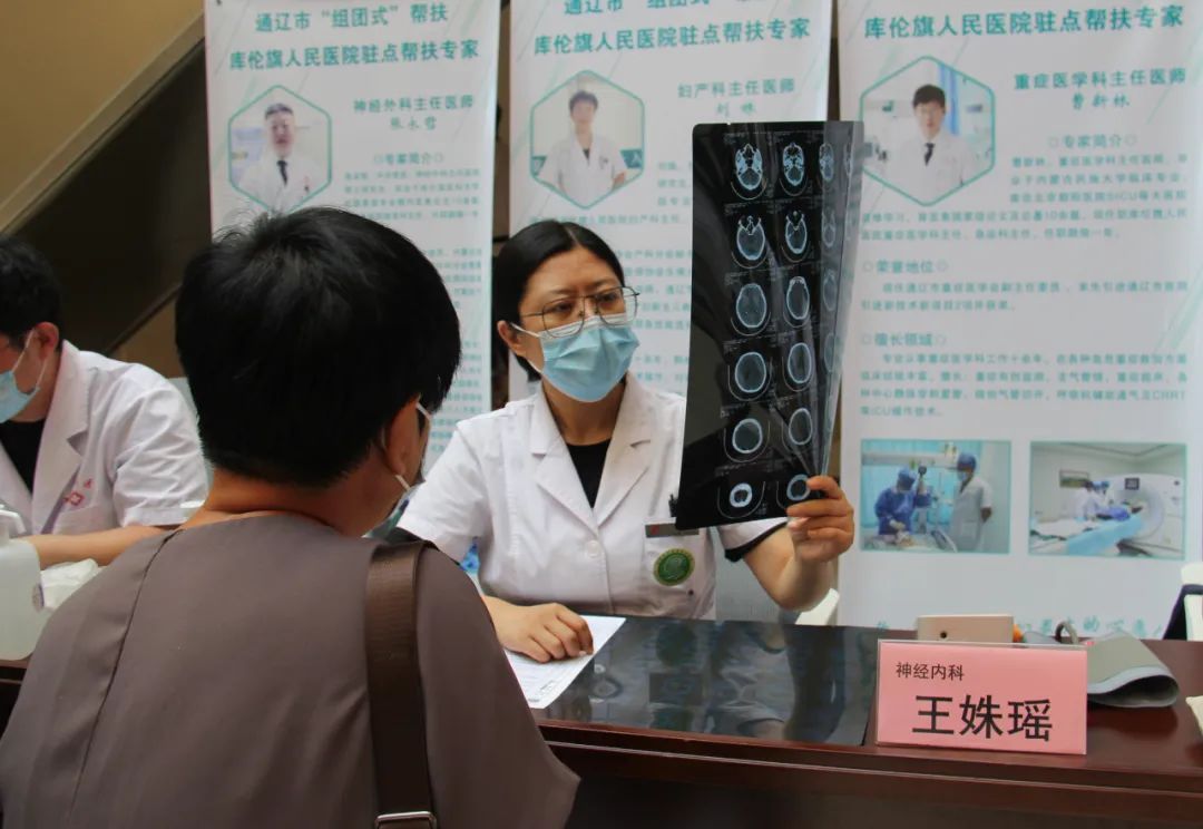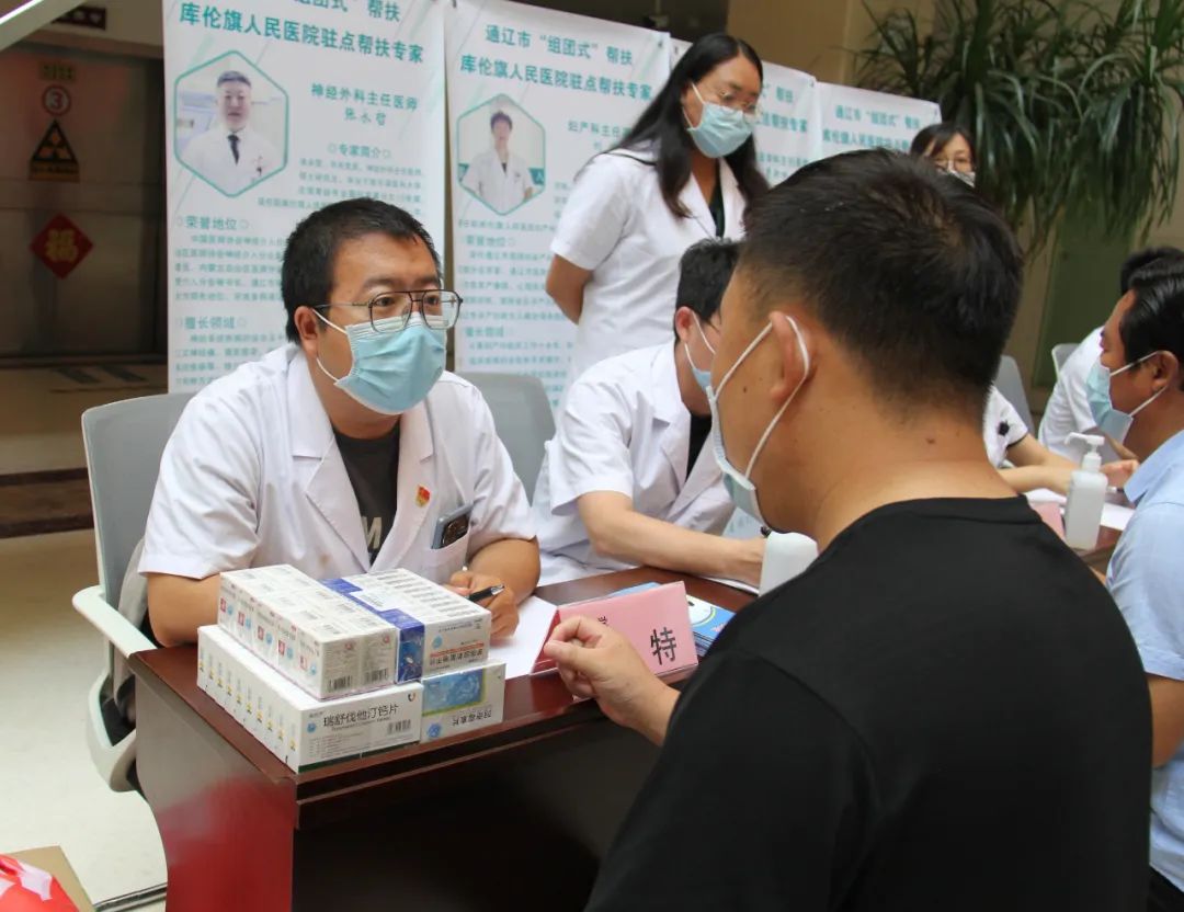 为庆祝第五个“中国医师节”,进一步巩固脱贫攻坚成果同乡村振兴的有效衔接,8月13日,我院组织消化内科、胸心外科、心血管内科、神经内科、中医科、营养科、药剂科等专业相关专家17人前往“组团式”帮扶医院——库伦旗人民医院开展义诊活动,为当地群众送医送药送健康,让广大基层群众少跑路,在家门口享受优质医疗服务。