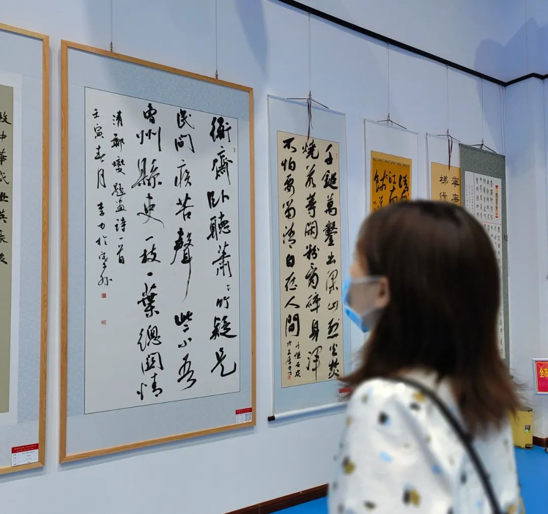 展厅内一幅幅廉政诗词字画,格调高雅,寓意深远,吸引着党员同志们在作品前驻足赏析,在鉴赏中得到启发。