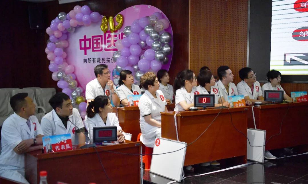 知识竞赛由必答题、共答题、抢答题、风险题组成,内容涵盖医院核心制度、医疗管理办法、医学知识等多个方面,参赛队员积极作答,现场气氛活跃。随后,大会为本年度医师节系列活动——病历书写大赛、青年医师徒手心肺复苏竞赛、医疗质量和安全管理知识竞赛获奖人员举行了颁奖仪式。党委书记金洁致辞,向临床一线的全体医师们致以节日的问候,并向受到表彰的优秀医师们表示祝贺。