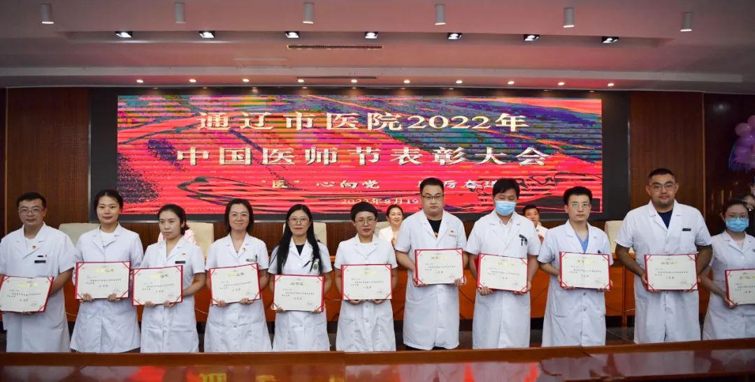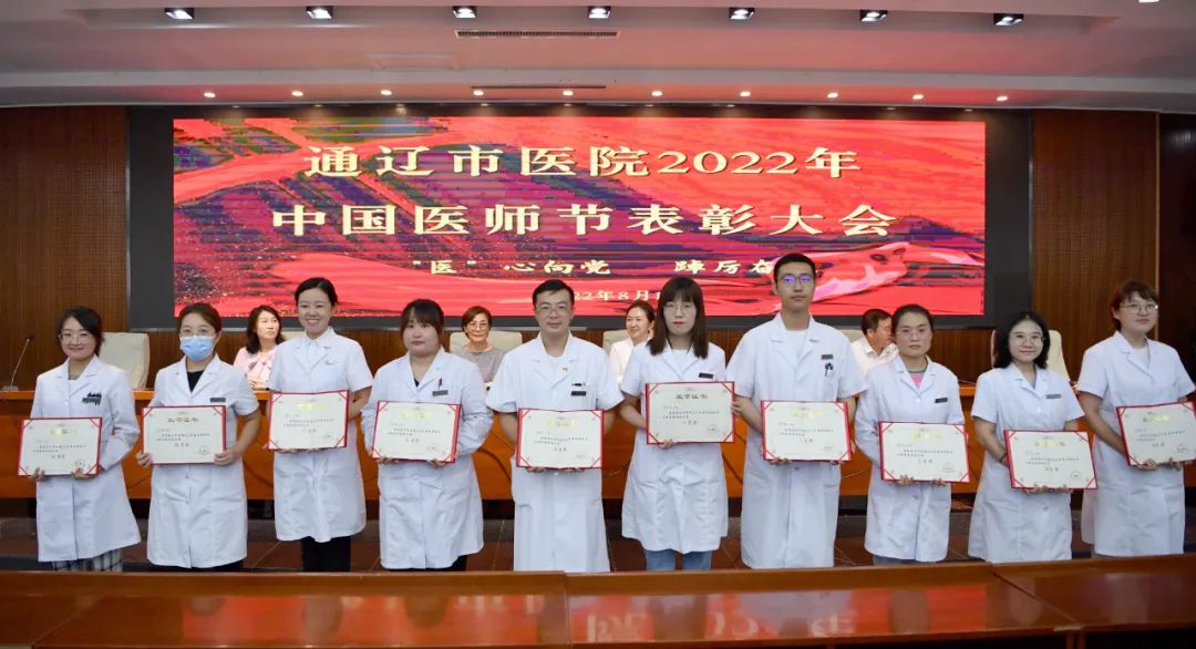 白衣执甲为苍生,丹心为矛守安康。8月19日是第五个“中国医师节”,为大力弘扬“敬佑生命,救死扶伤,甘于奉献,大爱无疆”的崇高职业精神,展示我院医师队伍良好的精神面貌,8月19日下午,我院举行了医疗质量和安全管理知识竞赛决赛暨通辽市医院2022年中国医师节表彰大会。表彰先进,树立典型,发挥示范引领作用,进一步鞭策全院医务人员爱岗敬业、救死扶伤、乐于奉献。我院领导班子成员和全院各科室医务人员参加会议。表彰大会由副院长杜建军主持。