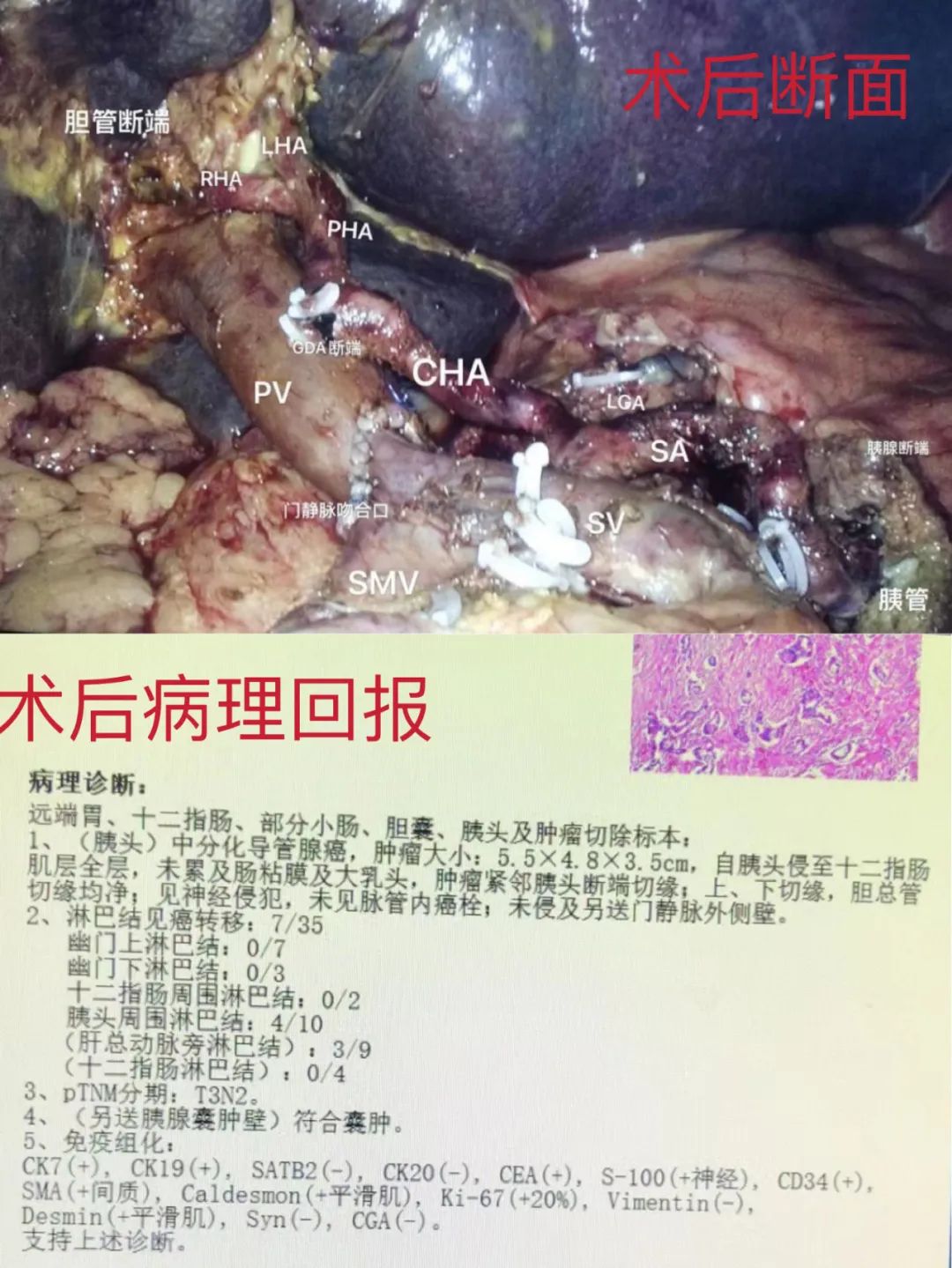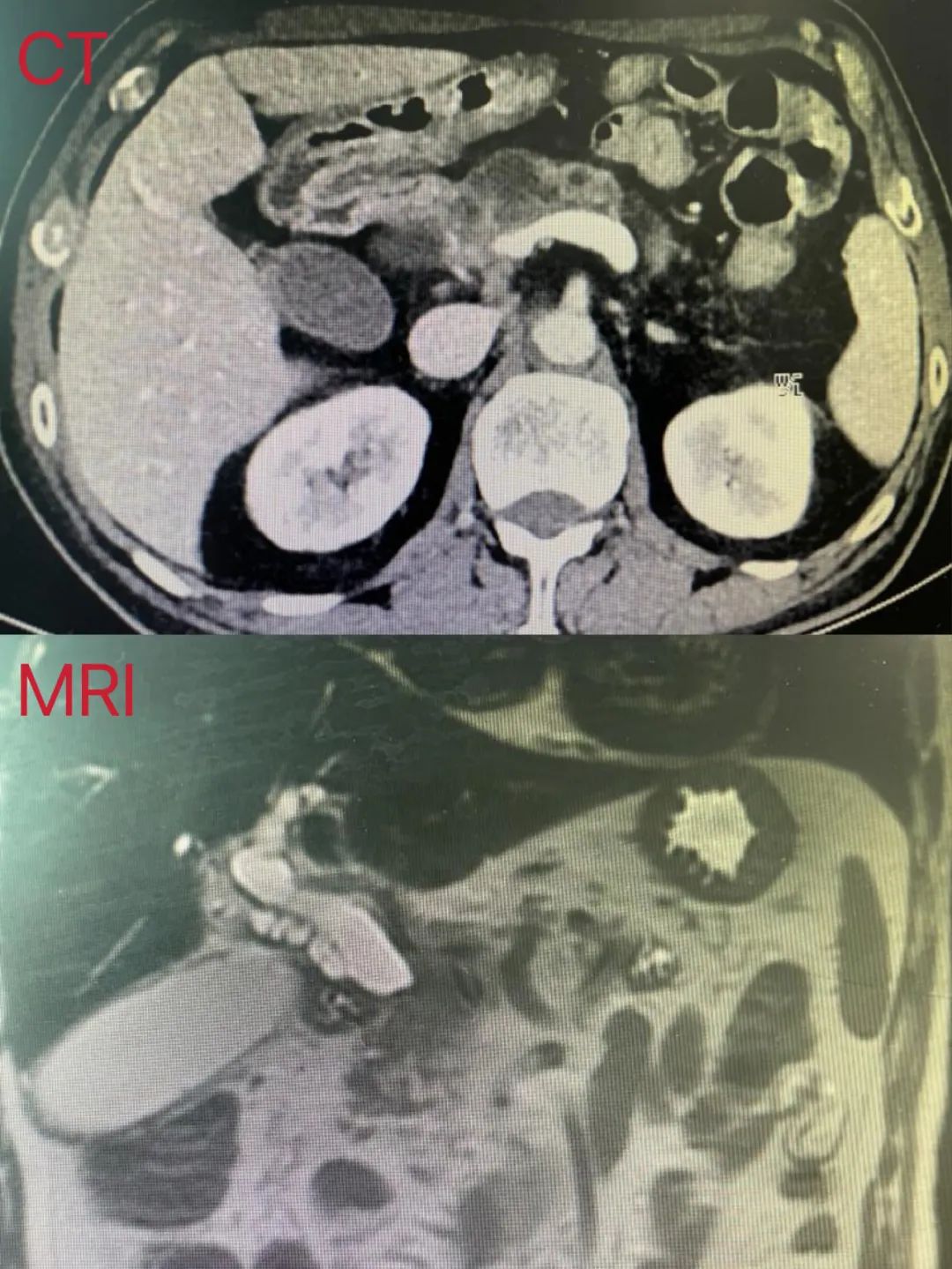 患者为高龄男性,因“间断性腹痛伴皮肤巩膜发黄1周余”入院,入院后完善相关检查提示:胰头肿瘤侵犯门静脉,考虑胰头癌,胰体囊肿,梗阻性黄疸。在与患者及患者家属充分沟通后,决定为其行腹腔镜下胰十二指肠切除术+联合门静脉部分切除血管吻合重建+胰体切除术,最大程度保留了胰腺功能,使患者得到根治性治疗。现患者恢复良好,术后1周复查超声重建门静脉血流通畅无狭窄。