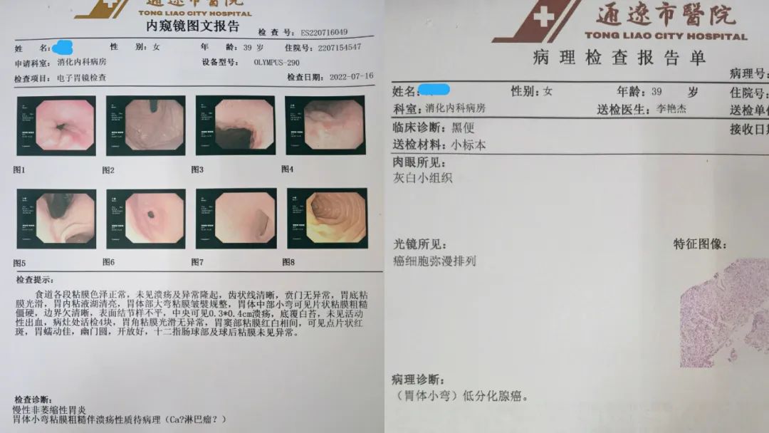 近期,胃肠外科收治了两名胃癌患者,分别为一位39岁女性患者,以“黑便14小时”入院。胃镜检查显示胃体小弯粘膜粗燥伴溃疡,待除外淋巴瘤或胃癌。病理结果为胃体小弯低分化腺癌。另一位是一名51岁男性患者,以“上腹胀痛2个月伴黑便”入院。胃镜检查显示胃体溃疡浸润性癌。病理结果为胃体低分化腺癌。