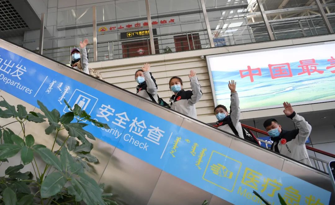 道不尽的嘱托,说不完的牵挂,在一声声“保护好自己”“战疫必胜”“平安归来”中,队员们毅然踏上抗疫征程。他们将凭借扎实的专业技能全力支援呼和浩特市疫情防控工作,用实际行动践行“人民至上、生命至上”理念和伟大抗疫精神,坚决守护好人民生命安全和身体健康,打赢抗疫阻击战。希望在各兄弟盟市的共同努力下,呼和浩特市疫情能够早日消散,祝愿医疗队早日平安凯旋!