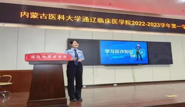为庆祝党的二十大胜利召开,深入贯彻落实打击治理电信网络诈骗犯罪工作的重要指示,进一步提升学生防范虚假信息诈骗意识,普及金融安全知识,切实维护校园安全和广大师生的财产安全,10月20日下午,内蒙古医科大学通辽临床医学院开展以“学习反诈知识 筑牢安全防线”为主题的反诈宣传教育活动。活动由清河街派出所副所长张婧妍同志主讲,2019级本科生参加活动。