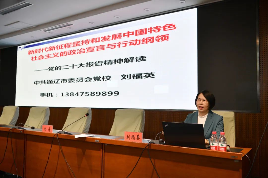 新思想引领新时代,新使命开启新征程。为深入学习贯彻党的二十大精神,激励全院干部职工奋发向上、担当实干,11月2日下午,我院党委在老干部病房一楼会议室组织开展深入学习贯彻党的二十大精神宣讲报告会,会议特别邀请党的二十大代表赵颖慧,通辽市委党校刘福英教授进行授课,院党委书记金洁主持,我院全体班子成员、各科室环节干部、各支部书记及委员近200人参加了会议。