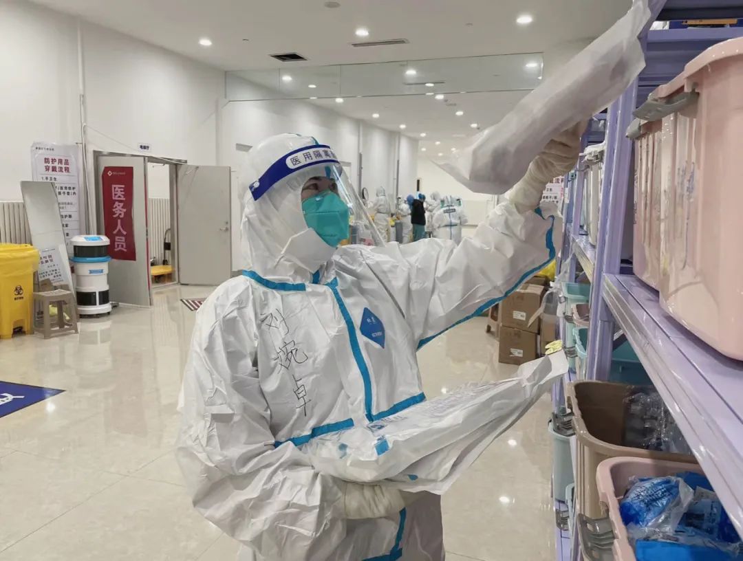 到达呼市后,我们第一时间前往方舱医院,完成了穿脱防护服、核酸采样、消杀及医院信息化系统操作等培训,参与新冠肺炎的各项防控和救治处置工作中。我主要负责护理工作,一身笨重的防护装备,让大家如同太空人,行动迟缓,给工作增加了更大的难度,可是只要一踏进病房,看见患者那一双双渴望康复的眼神,所有的苦累都不复存在,自己就像上了发条一样紧张而有序地忙碌起来……
