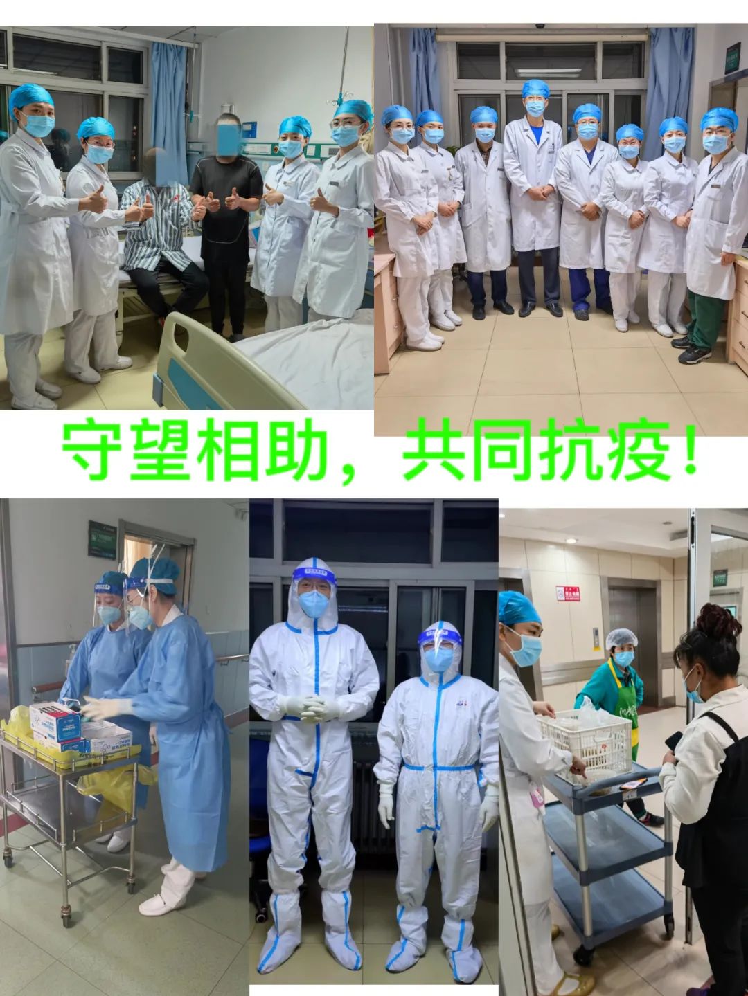 肿瘤内科同心抗疫,科室11名医护人员上岗,照顾管理80余名患者及陪护人员。由于科室肿瘤患者的特殊性,心理护理成了日常工作重点,大家利用治疗之余,与患者谈心交流,分散他们的注意力,以积极的心态面对每天生活治疗,有的患者自动承担起本病室的室长,配合医护人员给大家做心理疏导工作,拉进了医患之间的距离。住院患者及家属还主动帮助科室人员进行环境卫生清理和病区消杀工作,极大缓解了科室人员工作压力,以真心换真心,与患者心连心。