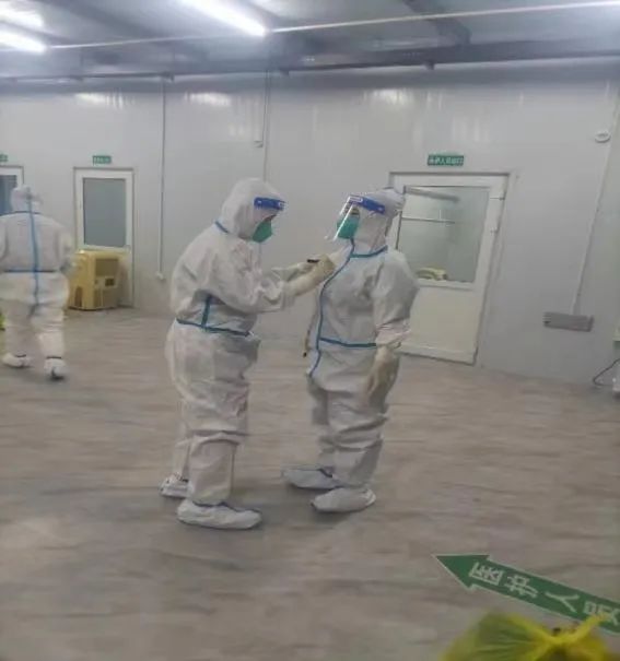 我每天的工作就是监督队友穿防护服,检查好防护服有无破损,口罩的气密性,面屏有无佩戴好等,这是我们抵御病毒最有效的屏障。