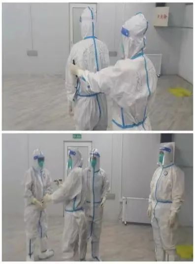 每个战友在进入方舱医院工作之前,我们都要监督他们穿戴防护服,从口罩气密性、防护服有无破损到面屏有无佩戴好等方面逐一检查,确保无误。因为这是我们抵御病毒最有效的屏障。
