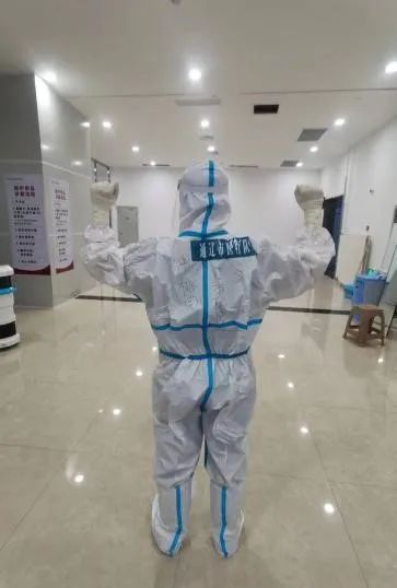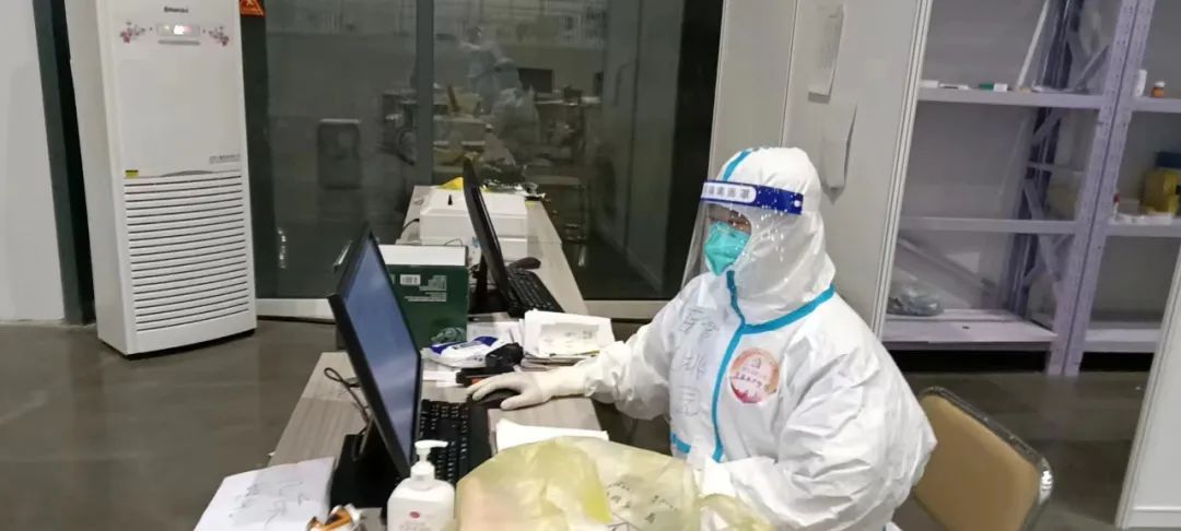 在方舱,我作为医生对病人进行评估,筛选,做好病人的引导安置。如果说舱内的工作好比战斗,那出舱脱防护服就像排雷,必须高度集中精力,小心地进行着每一步,如履薄冰,开始可以慢,但不能有一点失误,每天在脱区工作人员的指导和帮助下,安全的到达清洁区,圆满地完成了一次次舱内的战斗任务。