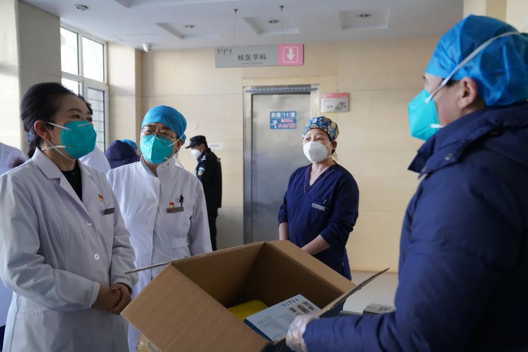 为贯彻落实通辽市卫健委《关于转发国务院应对新型冠状病毒肺炎疫情联防联控机制综合组关于不折不扣做好新冠肺炎医疗救治工作的通知》文件精神,面对当前我市疫情防控的严峻形势,为全力做好医院疫情防控和医疗救治工作,12月1日下午,我院党委书记金洁、带领医务部、护理部相关人员深入一线督导检查各部门工作开展与落实情况,并对奋战在一线的工作人员进行了慰问。