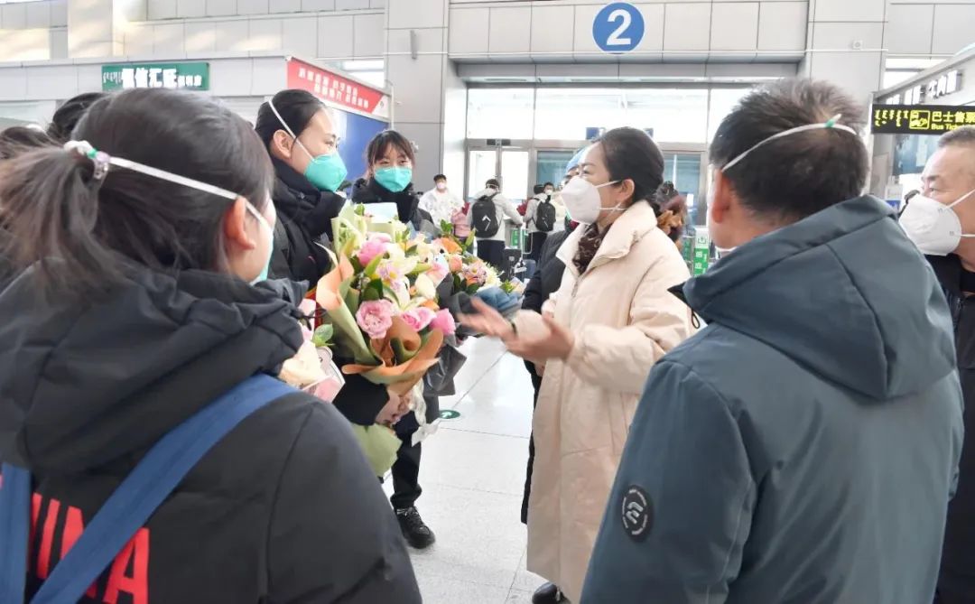 守望相助,载誉归来。12月17日,随着最后一批8名援呼重症医疗队员的归来,我院本次所有外出援呼的医护人员已圆满完成抗疫任务,凯旋回来!市卫健委副主任赵玉儒及我院领导班子成员早早来到机场大厅等候,为援呼医疗队的英雄举行欢迎仪式。