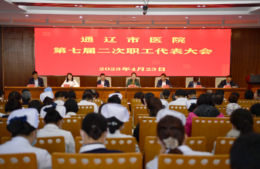 4月23日下午,通辽市医院第七届二次职工代表大会在老干部病房多功能会议室举行,院领导班子、职工代表共235人参加会议。