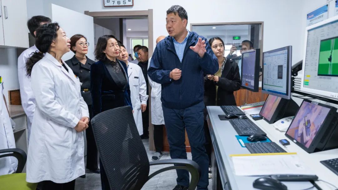 卫健委科教科科长王冠杰、我院副院长杜艳秋、科教部负责人陈晓军带领部分科室负责人陪同丁教授一行人走访了肿瘤放疗科、肿瘤内科、血液内科、风湿免疫科和神经内科等科室。各科室负责人和相关医务人员、科研人员就目前困惑的问题向丁教授进行了咨询,丁教授耐心地一一解答。走访过程中,丁教授向大家介绍了其团队研究的单细胞蛋白免疫印迹技术、单细胞质谱流式技术、单细胞组织病理拓扑学技术等,各科室对此都表示出了极大的兴趣,尤其在神经内科交流时,科室相关人员详细介绍了科室情况及目前的困难以及有关科研项目申报方面的问题,丁教授解答了相关问题后表示,在其承担的重大项目上双方可以进行合作研究,双方初步达成了合作意向。最后杜艳秋副院长总结了我院目前科研发展现状,并表示期待和丁教授在多学科领域展开合作。