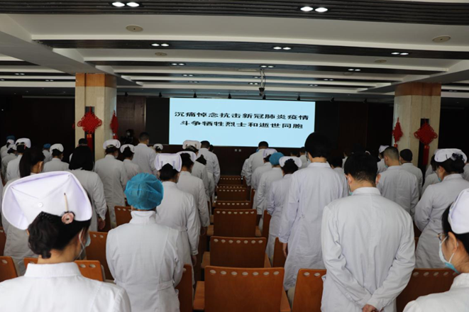 为表达全国各族人民对抗击新冠肺炎疫情斗争牺牲烈士和逝世同胞的深切哀悼,通辽市医院于2020年4月4日举行默哀活动,党委书记雷彤,党委副书记,副院长张双青,副院长杜艳秋,医院各支部党员及医护工作者160余人参加了此次哀悼活动。