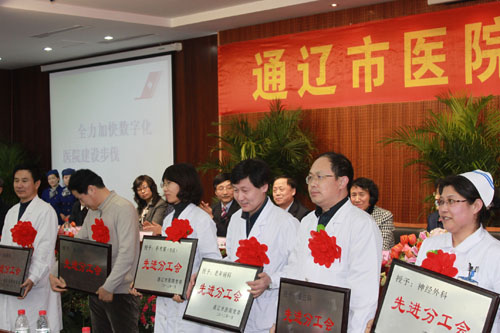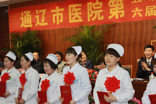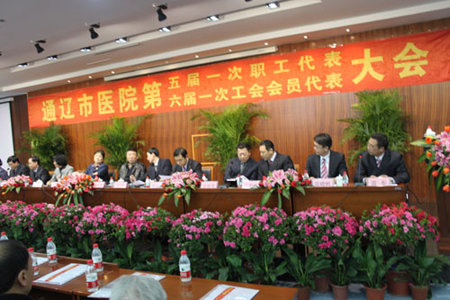 2012年1月13日通辽市医院第五届一次职工代表大会、六届一次工会会员代表大会在老干部病房一楼多功能厅隆重召开。回眸2011,老年病科在医疗、护理工作上均取得了可喜的成绩,在本次大会上荣获多项奖励: