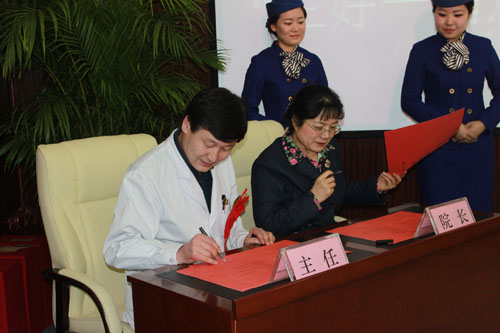 图7、王雪梅获十佳护士 图8、乌力吉主任与院长签定新一年责任状