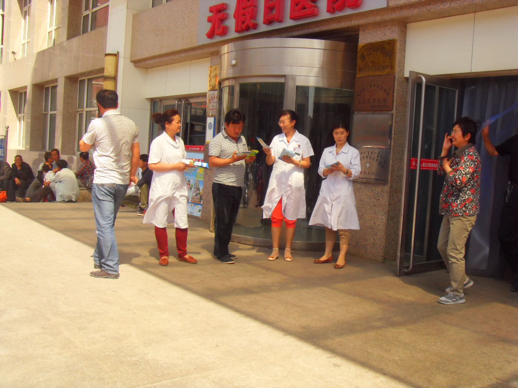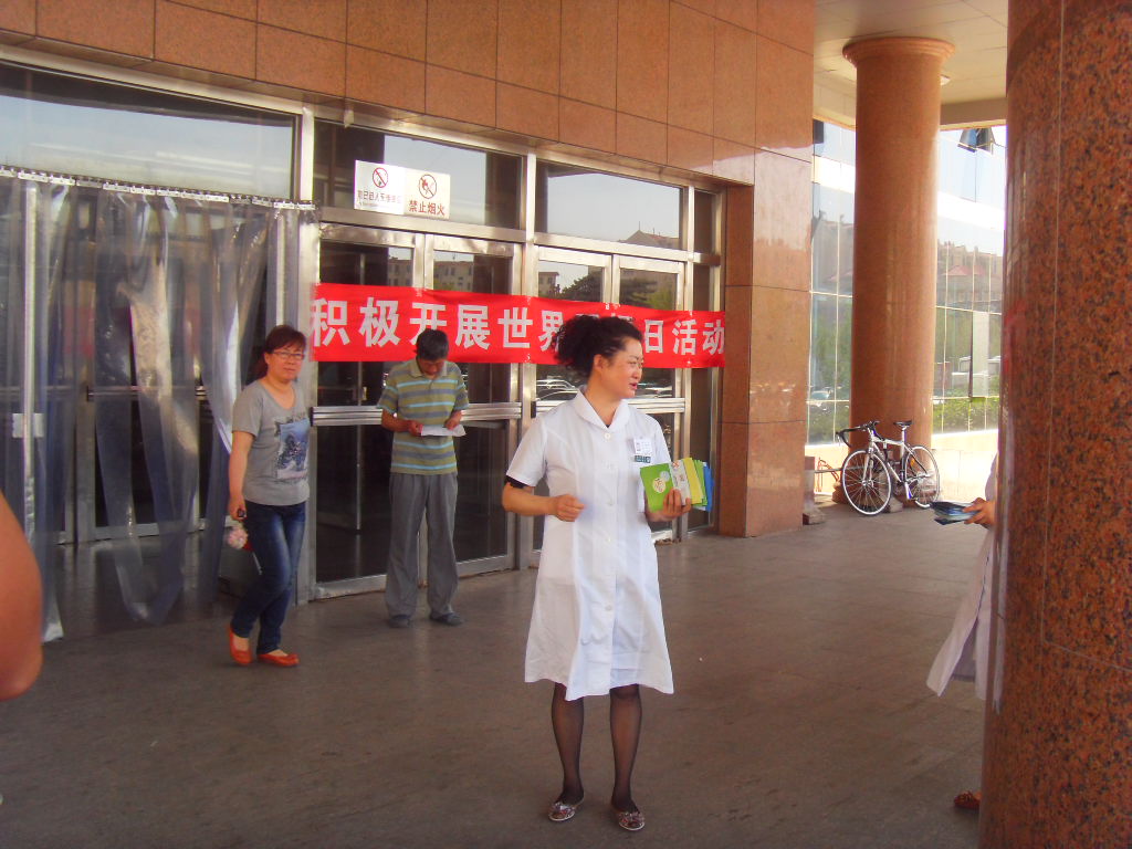 6.2013年5月31日上午医院组织了一支16人的宣传队,在医院前面开展第26个“世界无烟日活动”历时3个小时的活动,我们发放“控制烟草”、“禁止吸烟”、“预防各种传染病”以及“防治H7N9”等宣传单6000多余份,吸烟有害咨询50余人。通过各种形式向广大市民宣传吸烟有害,请大家远离烟草。共同营造无烟的良好环境。收到很好的效果。