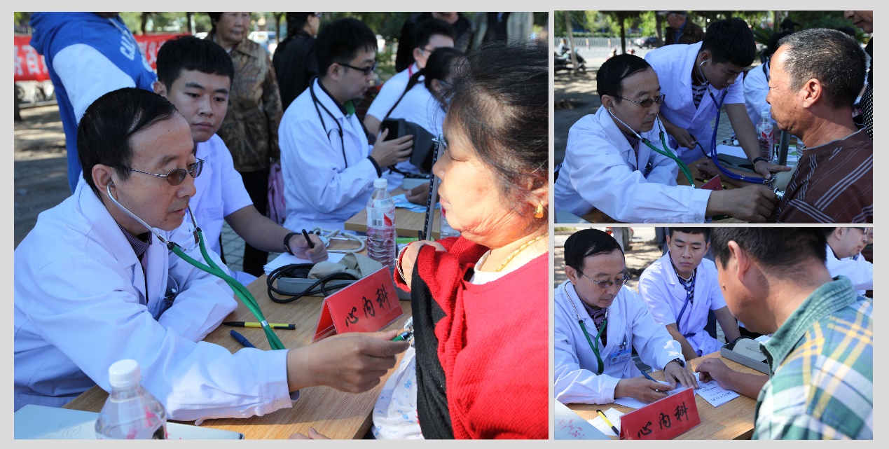 图为义诊现场我院医务人员与患者“面对面”