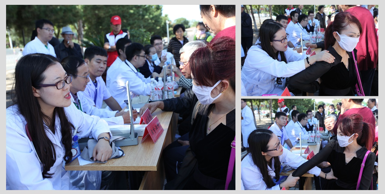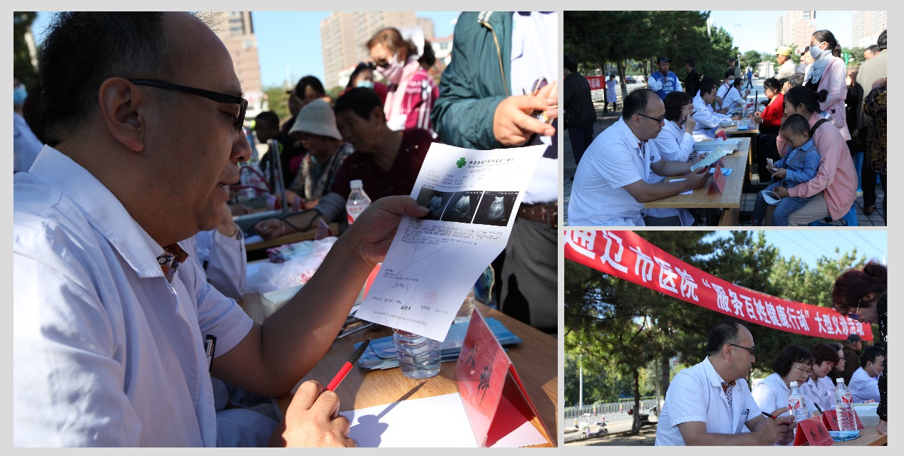 义诊现场,我院医务人员不顾初秋的炎热,以饱满的精神状态投入到义诊工作中,与患者面对面微笑服务,重点进行常见病与慢性病的咨询、初步筛查、诊断和一般治疗,普及医学常识和健康知识,倡导健康生活方式,引导群众科学就医,切实解决人民群众看病就医的实际问题,给我市人民送上了一份健康大餐。