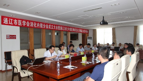 为提升我市消化内镜诊疗水平,促进消化内镜专科发展,进一步巩固我院消化内镜领头羊位置,8月13日至14日,由通辽市医学会主办,我院承办的“通辽市医学会消化内镜分会成立大会暨通辽消化内镜医师规范化培训能力提升讲座”在老干部病房七楼会议室隆重举行。北京友谊医院消化内镜中心副主任王拥军教授、北京中医药大学东方医院消化内镜中心主任王林恒教授、北京友谊医院消化内镜中心护士长邱光伟出席大会。市医学会负责人、我院杨安全副院长、张凤祥副院长以及来自全市18家医院的学术同仁50余人参会。