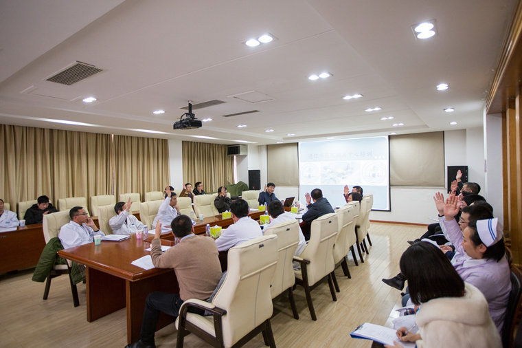大会第二项,参会人员就胸痛中心的组织机构、人员职责、工作流程进行讨论。具体涉及检验结果、检查结果能否在要求时间内完成;导管室、药剂科、临床科室能否在要求时间内做好准备;各相关医技科室是否能在规定时间内积极配合完成相关工作。讨论结束,全体与会人员举手表决我院胸痛中心建设的组织架构并一致通过。