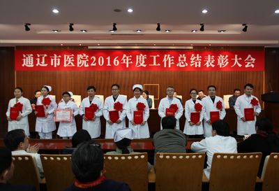 元月11日,新年伊始,万象更新,通辽市医院洋溢在一片祥和喜庆的气氛中。在院歌《平安的钟声》衬托下,通辽市医院2016年度工作总结表彰大会在老干部病房一楼多功能厅隆重召开。院领导班子成员、全院科主任、护士长、离退休职工代表、青年业务骨干代表、一线工人代表、受表彰人员共计240余人参加会议。