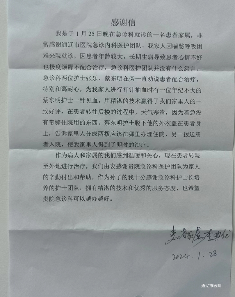 患者致:急诊内科全体医护