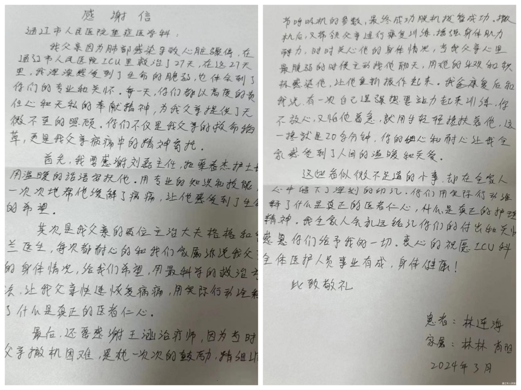 患者致:ICU全体医护