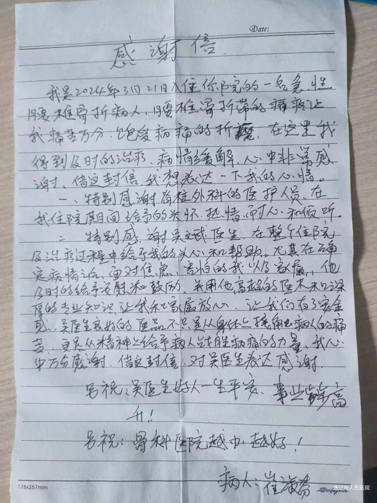 患者致:脊柱外科吴斌