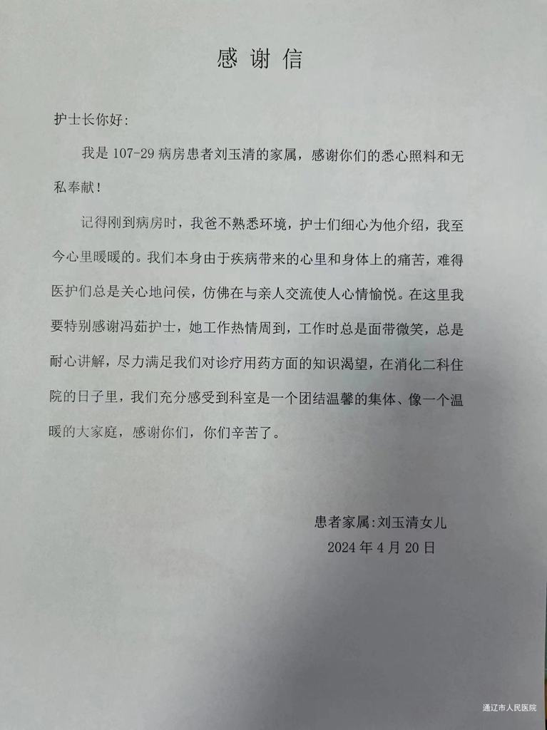 患者致:消化内二科冯茹