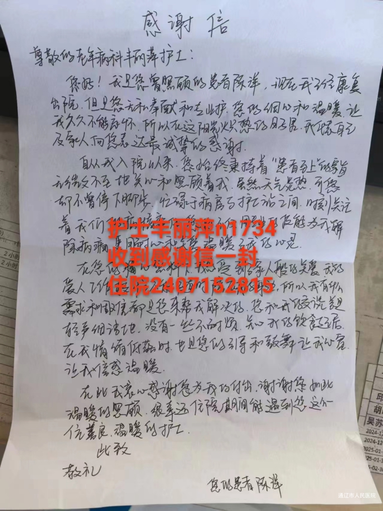患者致:老年病科丰丽萍