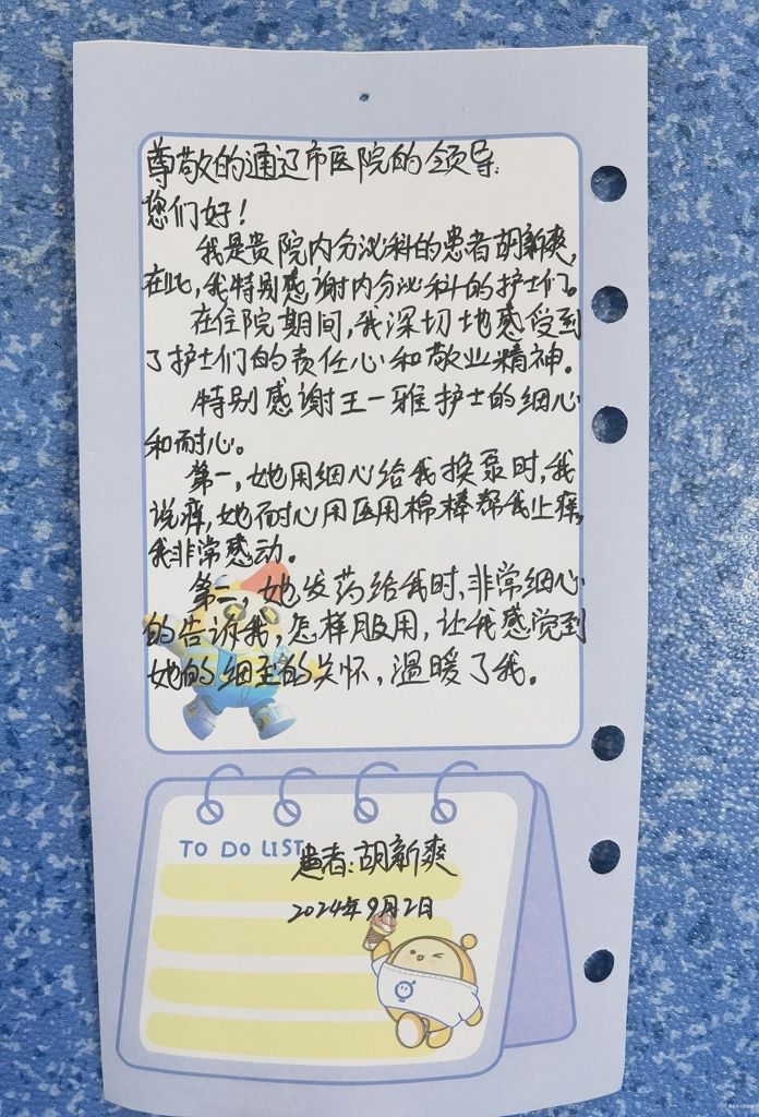 患者致:内分泌科全体护士