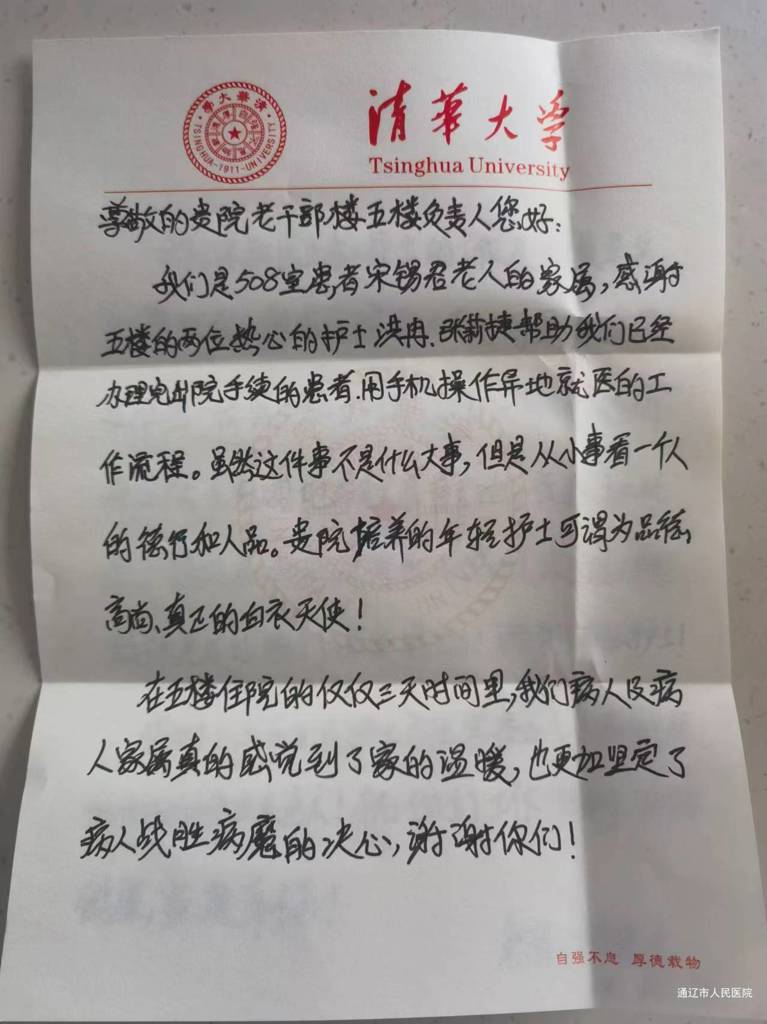 患者致:心内三科洪冉、张莉捷