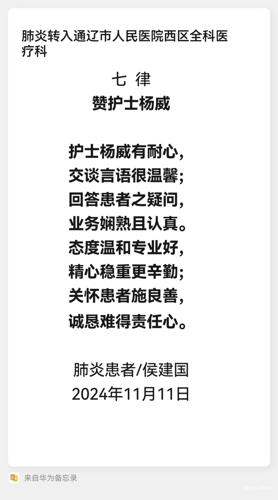 患者致:全科医疗科杨威