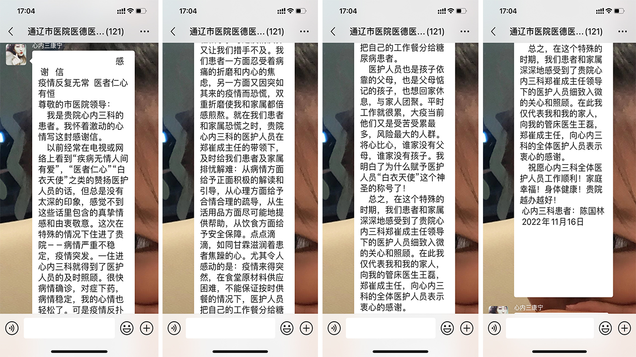 患者致:心内三科全体医护
