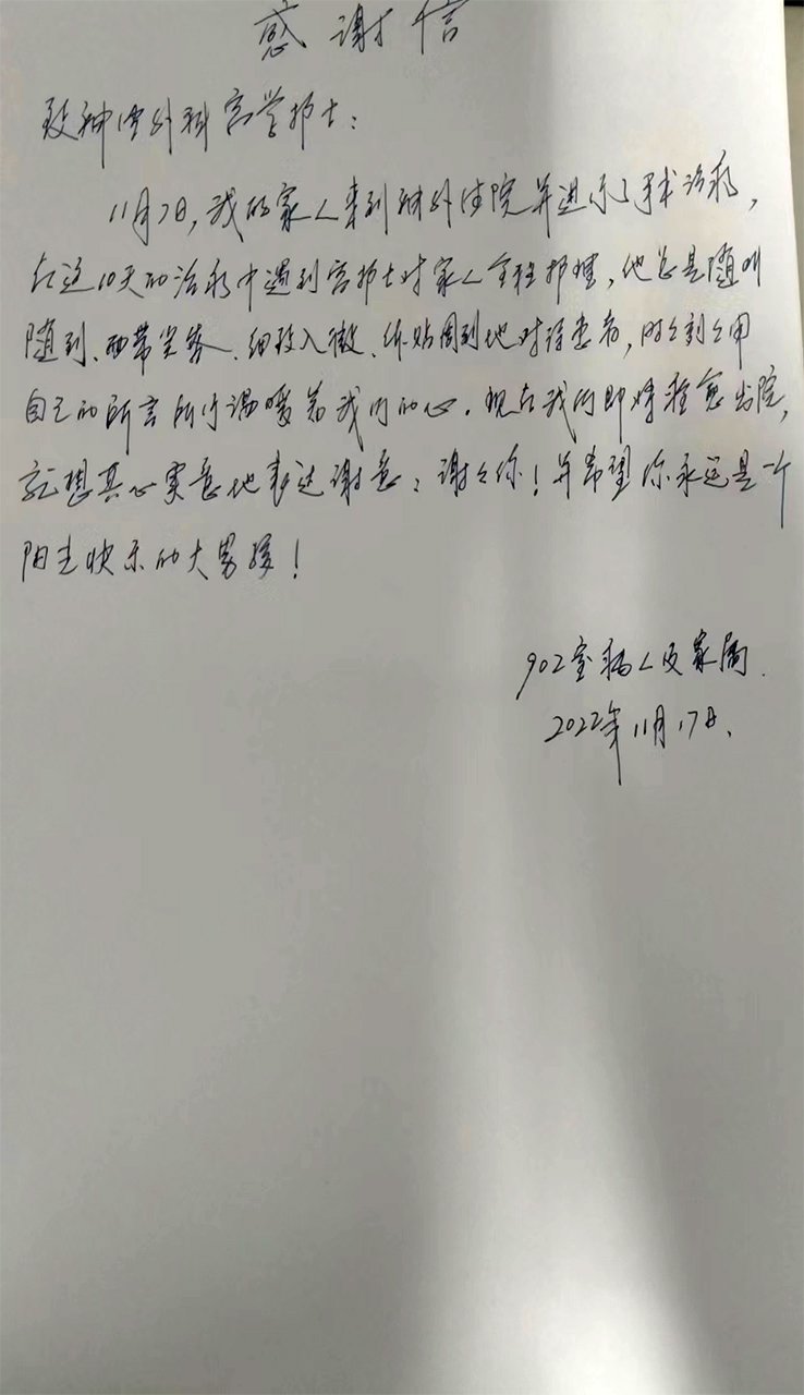患者致:东区神经外科宫学