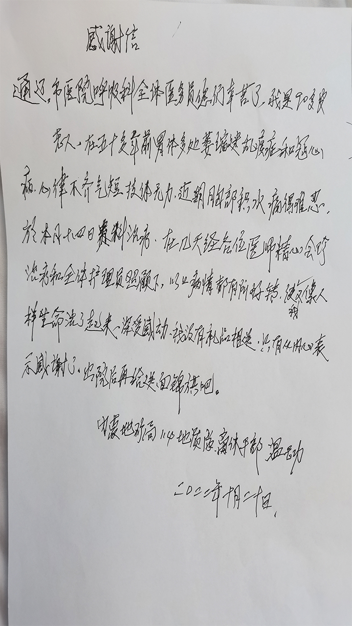 患者致:呼吸内科全体医护
