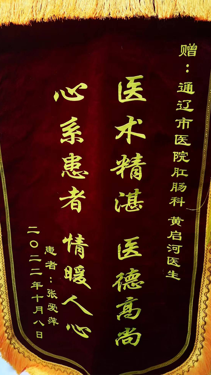 患者致:肛肠科黄启河