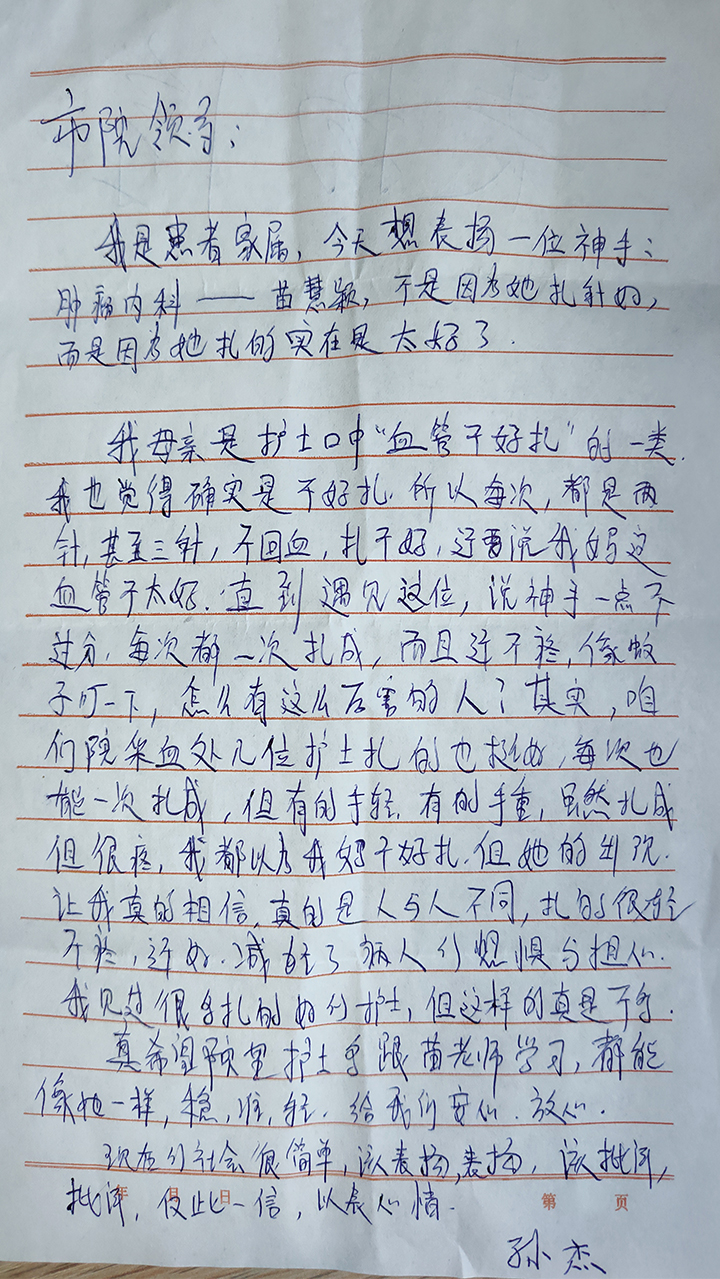 患者致:肿瘤内科苗慧颖