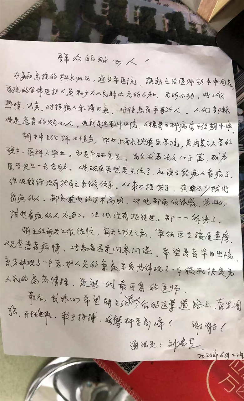 患者致:骨五科胡忠申