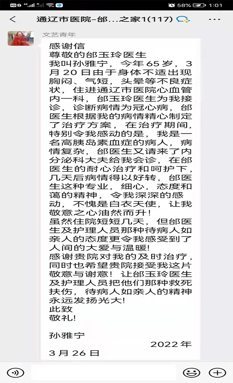 患者致:心内一科邰玉玲医生