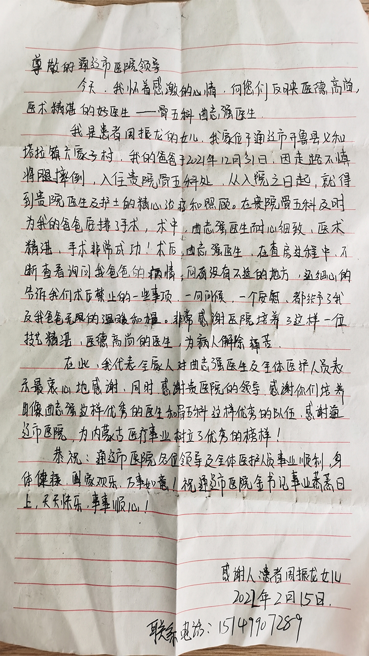 患者致:骨五科曲志强医生