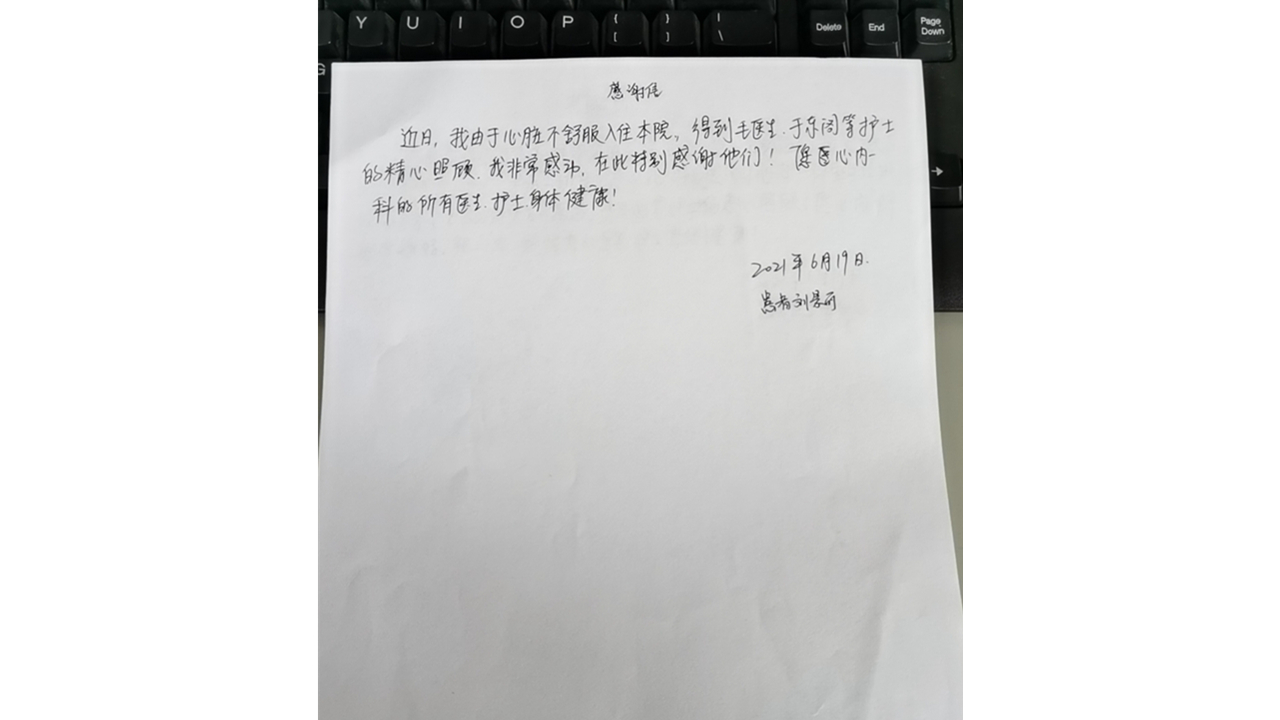 患者致:通辽市医院心内一科毛汇桐医生、于东阁护士