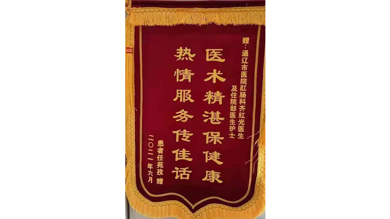 患者任苑孜致:通辽市医院肛肠诊疗中心齐红光医生及全体护士