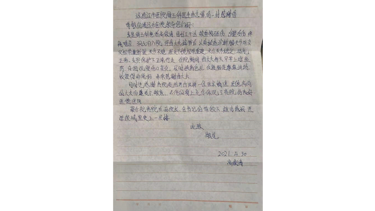 患者致:通辽市医院骨五科曲志强医生