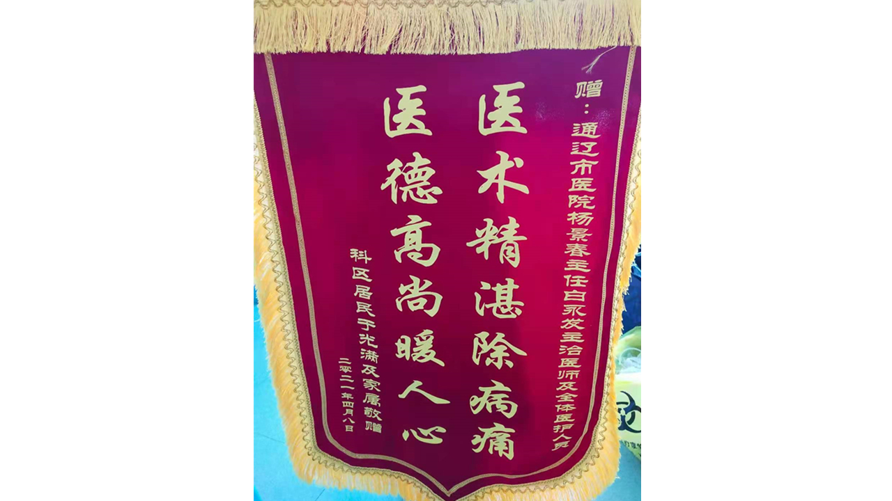 患者于光满及家属致:通辽市医院胸心外科杨景春主任、白永俊医生及全体医护人员